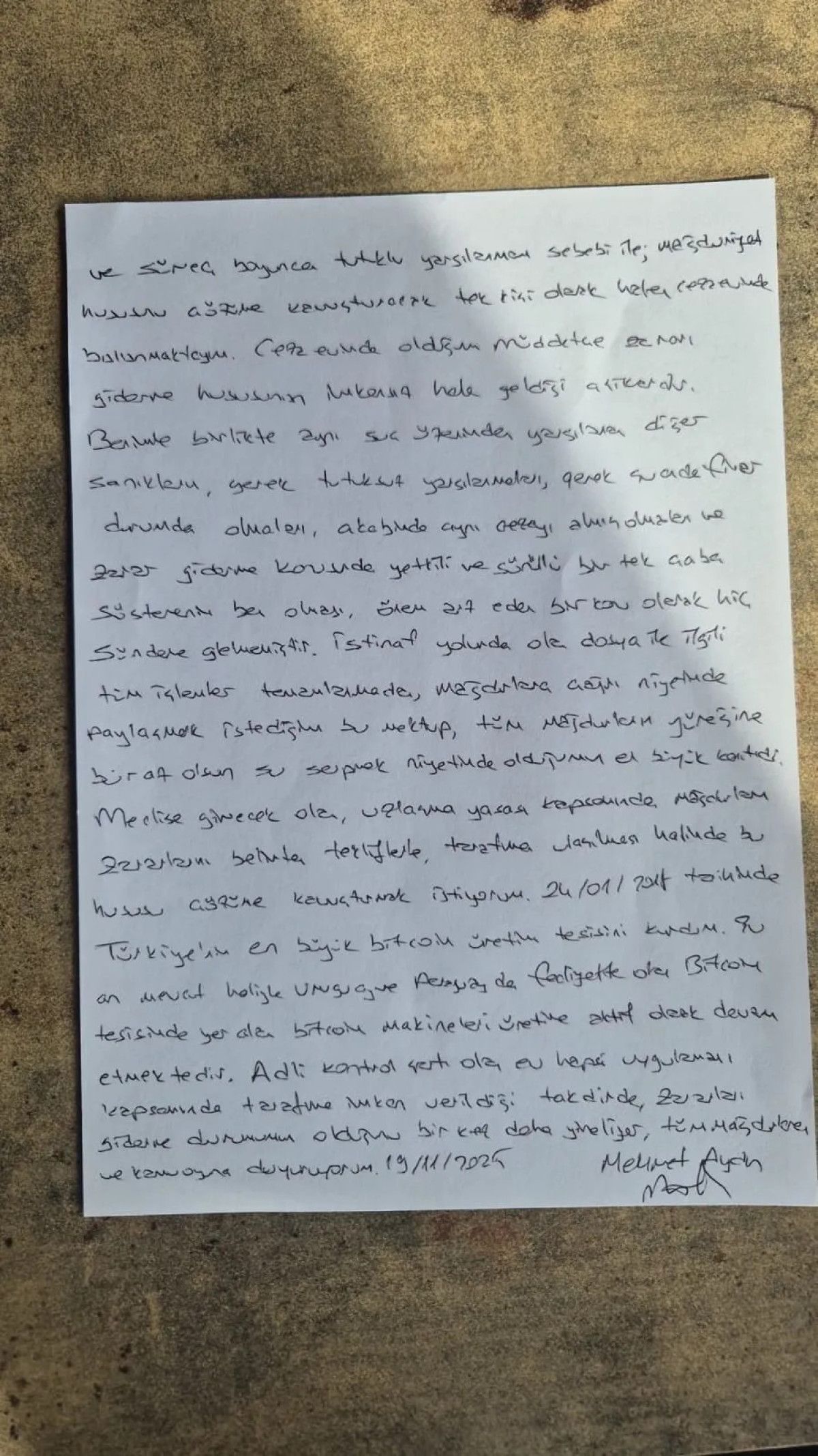 Cezaevinden mektup yazan ve mağdurlara seslenen Aydın, zararı karşılamak istediğini belirtti.