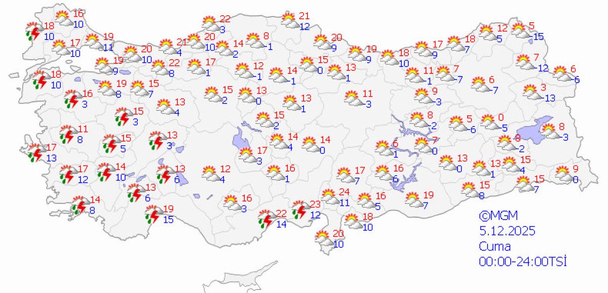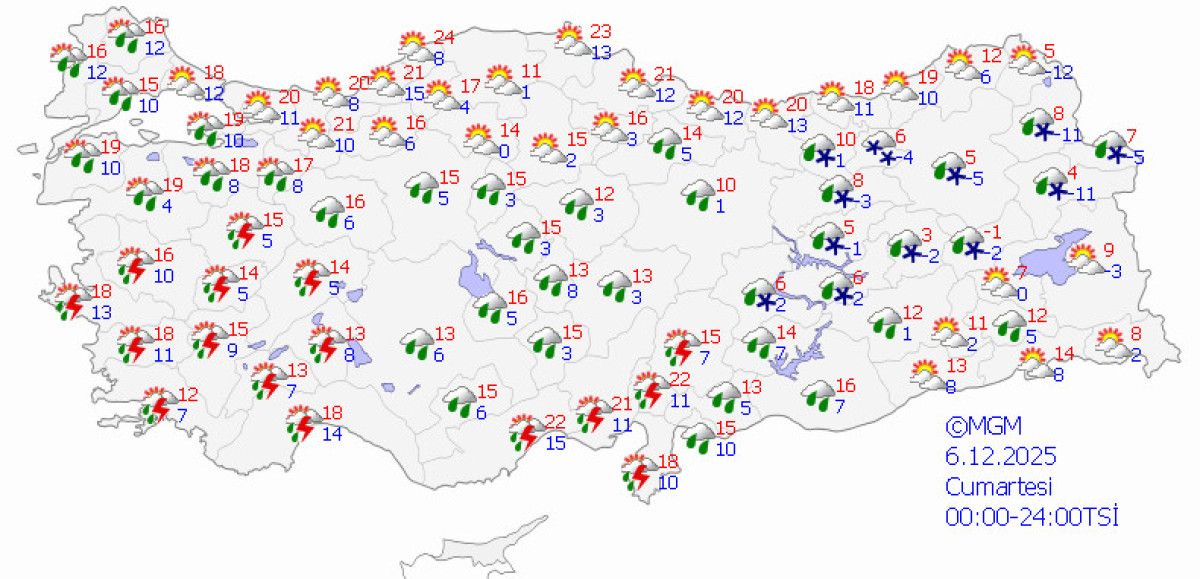 MGM’nin son verilerine göre ülke genelinde yağışlı hava etkili olacak.